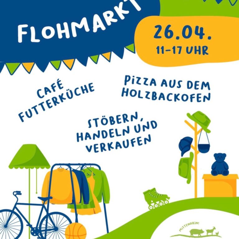 Am Sonntag, den 26.04.2026, lädt der Förderverein des SCHUBZ e.V. wieder zum beliebten Familienflohmarkt im Arche-Park ein. Hier können private Verkäuferinnen und Verkäufer gebrauchte Dinge in haushaltsüblichen Mengen anbieten – ganz ohne gewerbliche Anbieter und ohne Neuwaren.